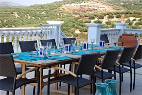 terrasse ombragée et des jardins fleuris, des oliviers et un vaste